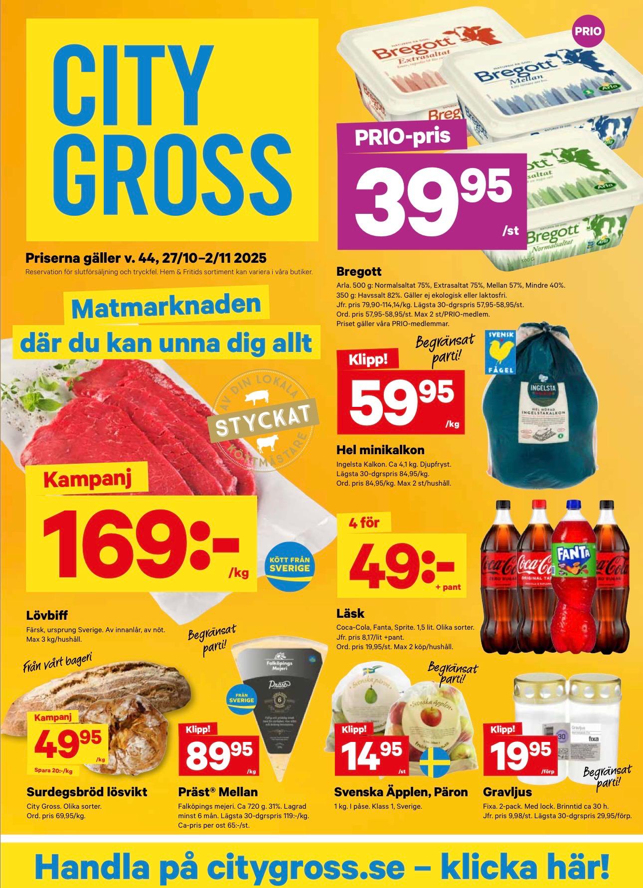 Färska kvalitetsråvaror när du handlar på City Gross. Handla online och hämta i butik. Goda, inspirerande och enkla favoritrecept som passar hela familjen. Leverans 6 dagar i veckan.