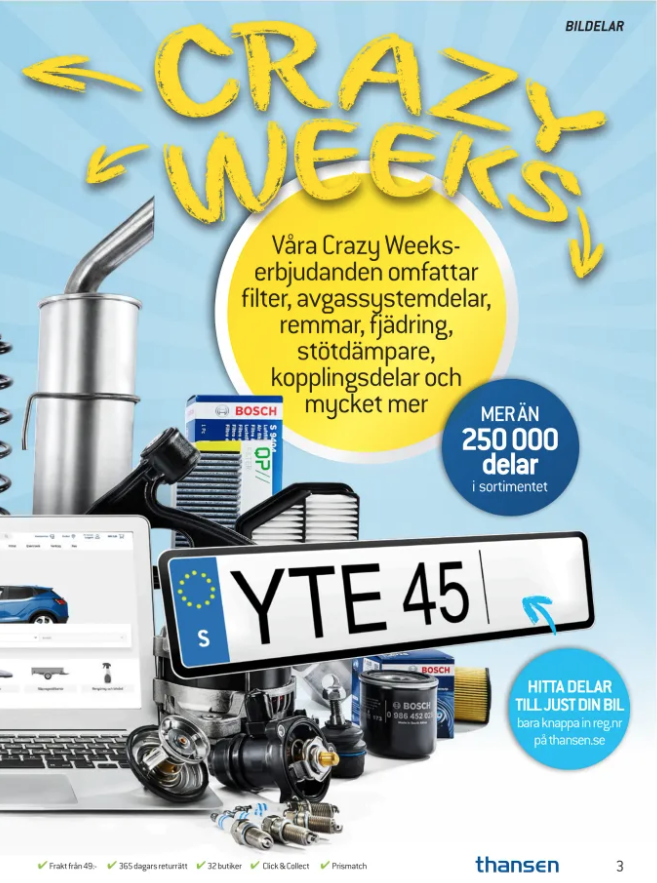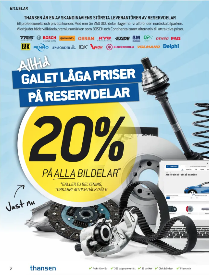 Spara upp till 20% på bildelar hos Thansen. Stort sortiment med över 250 000 delar för alla bilmärken