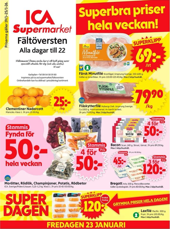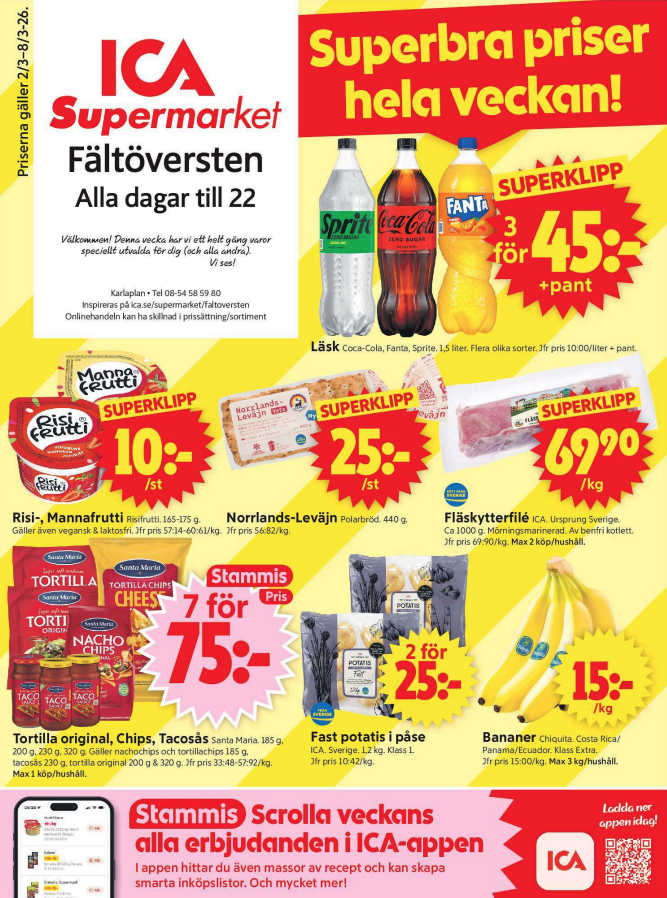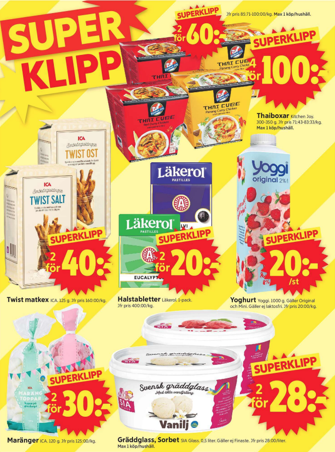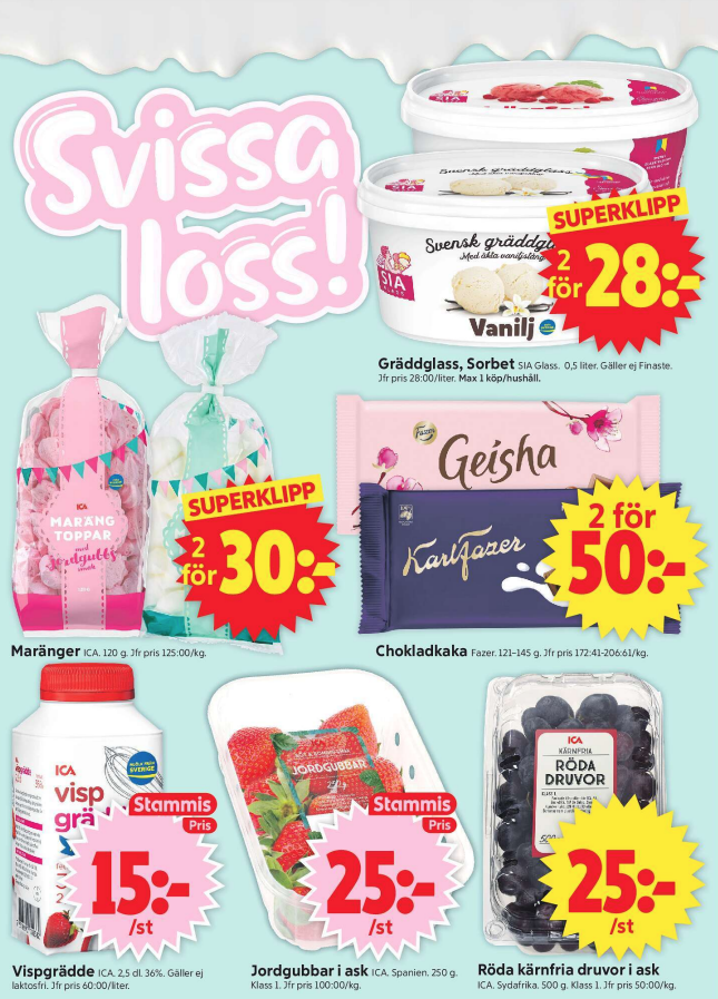 Upptäck aktuella erbjudanden hos ICA Supermarket och ta del av rabatter på färska råvaror, kött, mejeriprodukter och basvaror. Jämför med Willys, Lidl och Coop för att hitta de bästa priserna
